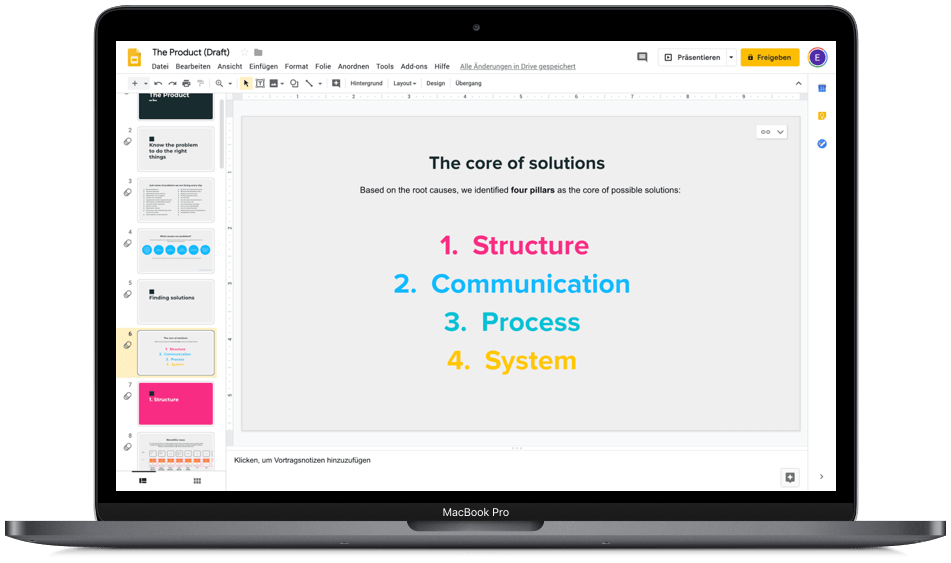 To solve current problems and tackle potential future challenges caused by the high number of sub-brands, we started to work on a strategy for the product to provide holistic and flexible steps to bring the subbrands together. At first, we needed to understand where we are currently and which implications the current landscape had. In close collaboration with different departments and stakeholders, we were able to identify four areas that we needed to focus on for the strategy. Structure, communication, processes and system are those areas. Knowing this, we could start shaping a new environment for our products.